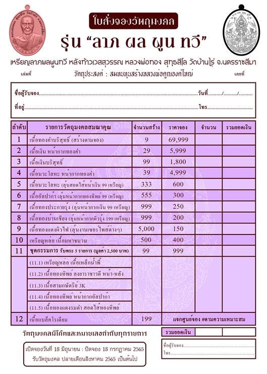 *** เปิดจอง// เหรียญลาภผลพูนทวี หลังท้าวเวสสุวรรณ หลวงพ่อทอง สุทธสีโล วัดบ้านไร่ จ.นครราชสีมา
