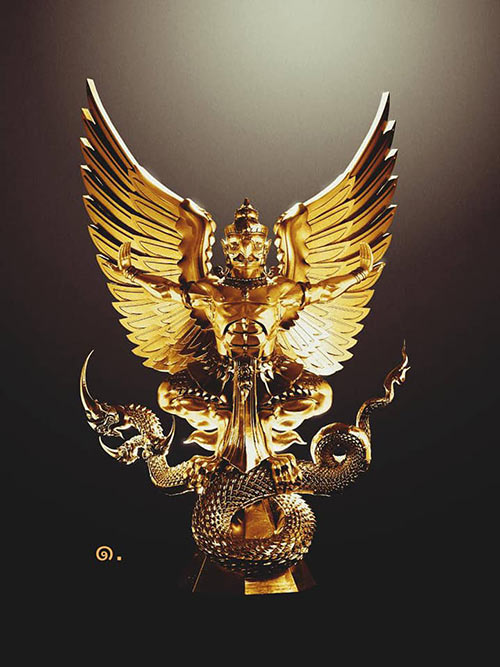 ผมตีความจากความเชื่อเดิม ในคติเรื่องพญาครุฑและพญานาคในความหมายที่เราเคยฟังมาแต่เก่าก่อน โดยนำมาร้อยเรียงใหม่ ในบริบทความเชื่อของสังคมยุคปัจจุบันในปี 2565นี้ ผมมองเป็นของเรื่องความสมดุลยในการกำเนิดของวัฏจักร ของทุกสรรพสิ่ง ล้วนยึดโยง ส่งเสริม สอดประสาน และพึ่งพาอาศัยอาศัยกันไม่ว่าทางตรงหรืออ้อมก็ตาม