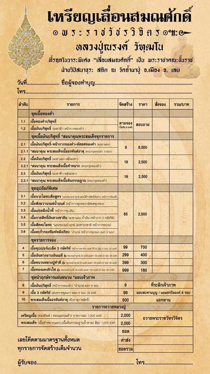 รายการ 3. ชุดอุปถัมภ์พิเศษ (รับพระ 6 เหรียญ) ราคาจอง 2,500.-บาท= 1