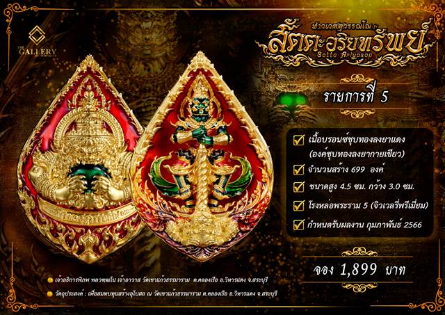 รายการ 5. เนื้อบรอนซ์ชุบทองลงยาแดง-องค์ชุบทองลงยากายเขียว ราคาจอง 1,899.-บาท มียอด = 2