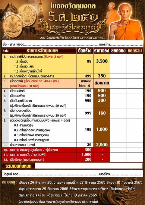 รายการ 1.ชุดกรรมการ เทนำฤกษืที่วัด (รับพระ 3 องค์) ราคาจอง 3,500.-บาท มียอด = 2