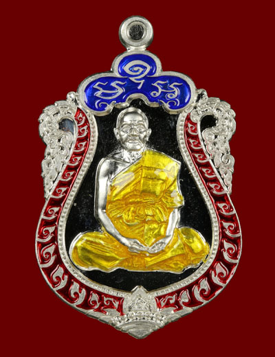 2.เนื้อเงินลงยา 4 สี ซุ้มเขียว กนกน้ำเงิน พื้นแดง จีวรเหลือง ราคา 2,200 มียอด 1 เหรียญ