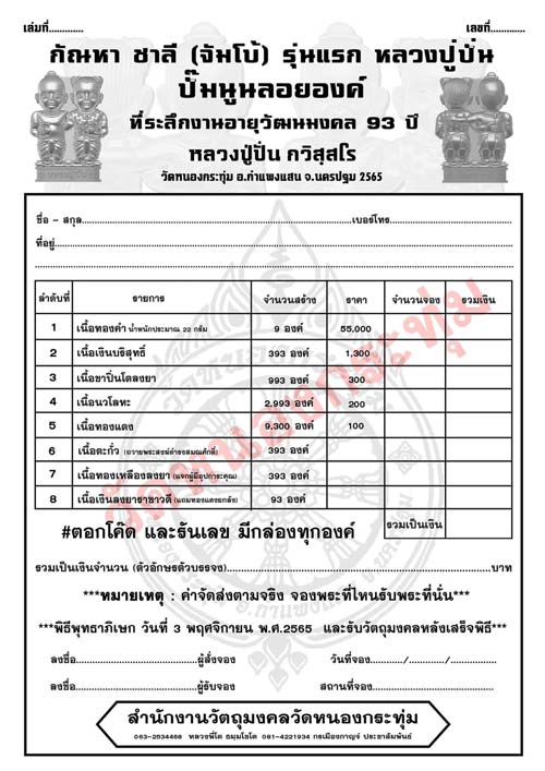 รายการที่ 4 เนื้อนวะโลหะ สร้าง 2993 องค์ ราคาจอง 200 บาท มียอด 25 องค์