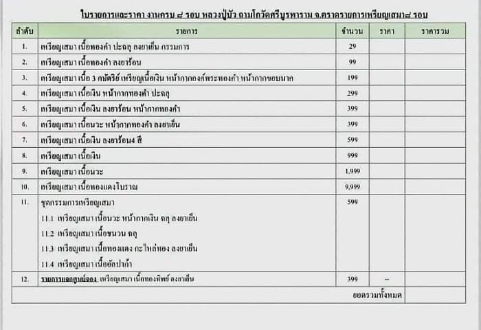 รายการ 5.เหรียญเสมา เนื้อเงิน ลงยาร้อน หน้ากากทองคำ มียอด 2 เหรียญๆละ 11,500 บ.