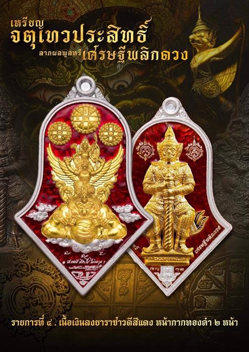 *** เปิดจอง// เหรียญจตุเทวประสิทธิ์ พิมพ์ทรงจำปี รุ่น "ลาภผลพูนทวี เศรษฐีพลิกดวง"