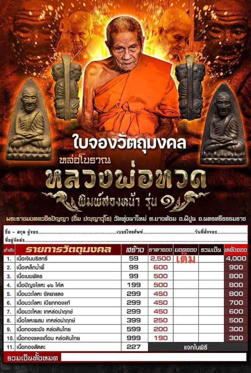 รายการ 4.เนื้อปัญจโลหะ 16 โค๊ต ราคาจอง 500.-บาท มียอด = 5
