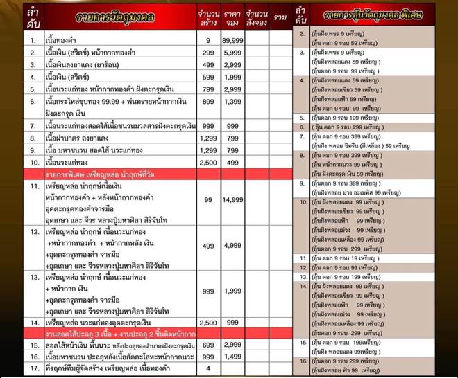 *** มีรายการเปิดจอง ดังนี้ครับ