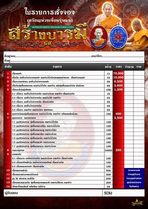 รายการ 7.ชุดกรรมการ (รับพระ 7 เหรียญ) ราคาจอง 2,500.-บาท มียอด= 5