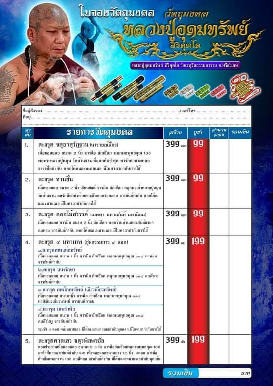 สร้าง 399ชุด 199บาท มีใบคาถากำกับการใช้