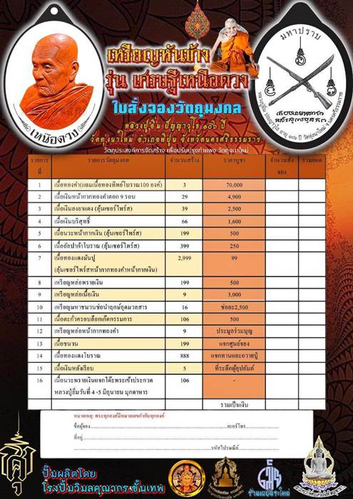 รายการ 10.เหรียญมหาชนวนช่อนำฤกษ์ อุดมวลสาร ราคาจอง 2,500.-บาท มียอด = สอบถาม