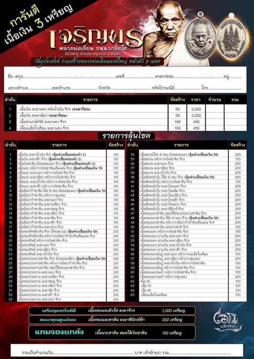 รายการ 1.เนื้อเงินลงยาแดง หลังน้ำเงิน ลงยาจีวร ราคาจอง 2,000.-บาท มียอด= 1