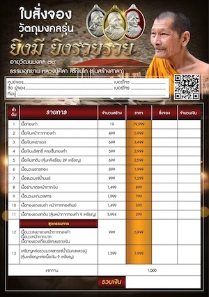 * เปิดยอดจอง// "ยิ่งมียิ่งรวยรวย" อายุวัฒนฯ79 หลวงปู่ศิลา สิริจันโท