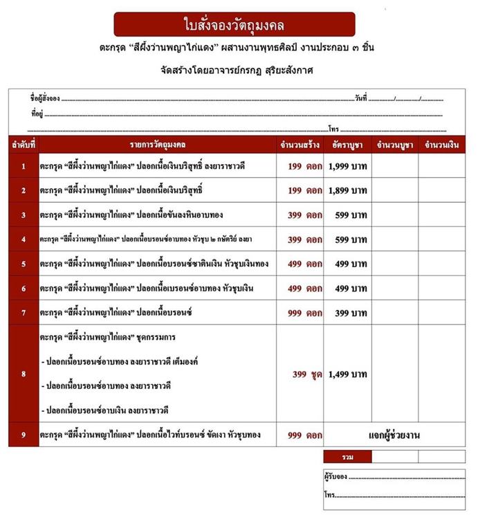 รายการ 1.ตะกรุด สีผึ้งพญาไก่แดง ปลอกเนื้อเงินบริสุทธิ์ ลงยาราชาวดี ราคาจอง 1,999.-บาท มียอด= 2