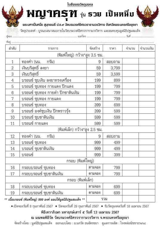 *** เปิดจอง// พญาครุฑ รุ่น รวย เป็นหนึ่ง พระมหาเป็นหนึ่ง สุนฺทรเมธี ป.ธ.๙ วัดบรมวงศ์อิศรวรารามวรวิหาร จ.พระนครศรีอยุธยา