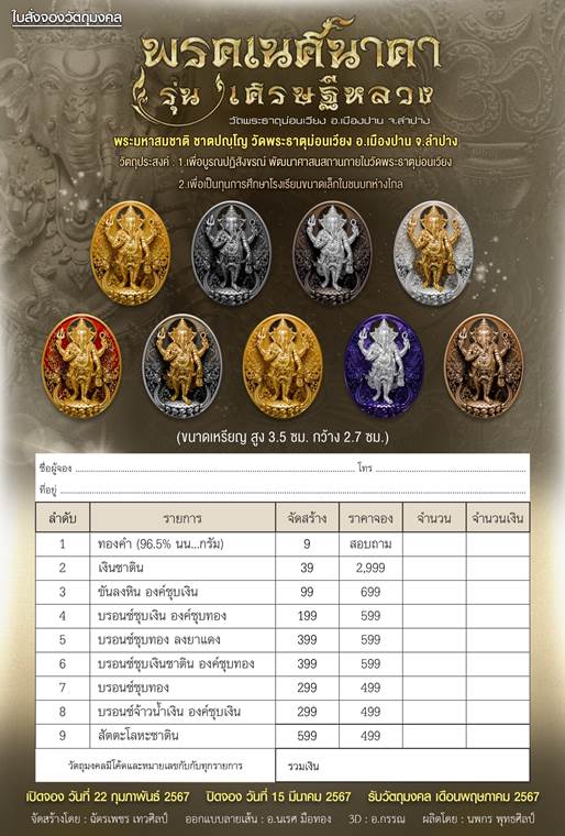 หัวข้อกระทู้ : เปิดจอง// พรคเนศนาคา รุ่น เศรษฐีหลวง พระมหาสมชาติ ชาตปญฺโญ วัดพระธาตุม่อนเวียง อ.เมืองปาน จ.ลำปาง