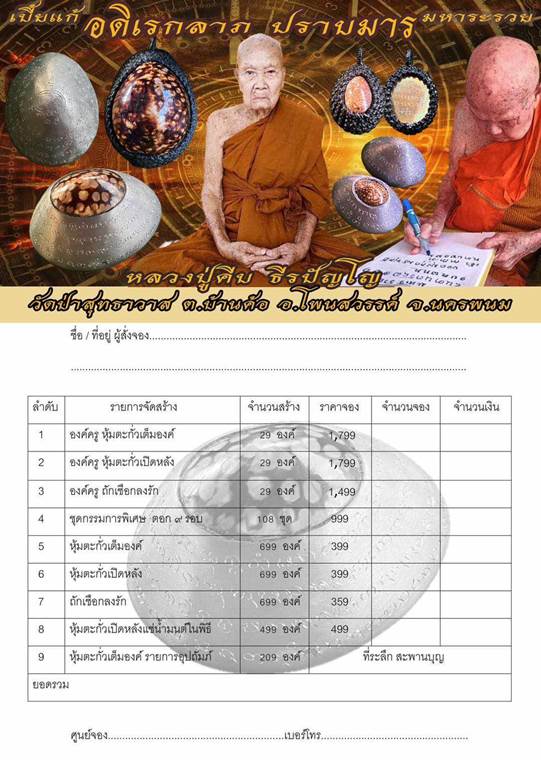 รายการ 1.องค์ครู หุ้มตะกั่วเต็มองค์ ราคาจอง 1,799.-บาท มียอด = 1