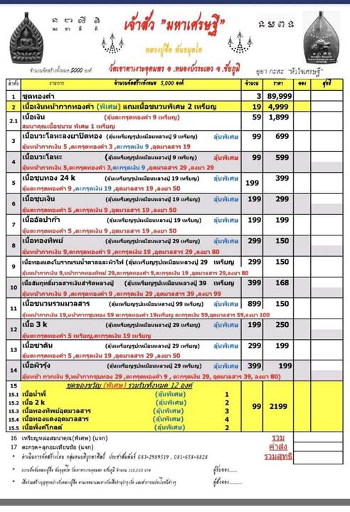 รายการ 10. เนื้อสัมฤทธิ์มวลสารเงินสำริดหลวงปู่ (ลุ้นพิเศษ) ราคาจอง 168.-บาท มียอด = 20