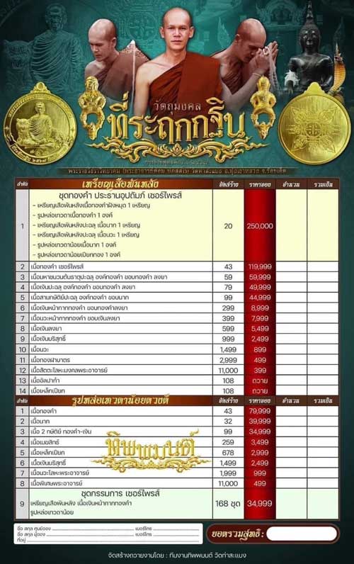 รายการ 12 เนื้อสัตตะโลหะมงคลพระอาจารย์ ราคา 1100.-บาท มียอด = 1