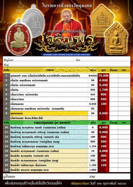 รายการ 14. พิมพ์ใหญ่ ไม่ฝังตะกรุด ผงพุทธคุณ ราคาจอง 199.-บาท มียอด= 20