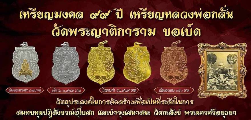 *** เปิดจอง// เหรียญหลวงพ่อกลั่นมงคล ๙๙ ปี เหรียญหลวงพ่อกลั่น วัดพระญาติการาม ขอเบ็ด