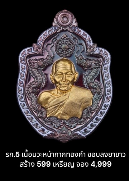 รก.5 เนื้อนวะหน้ากากทองคำ ขอบลงยาขาว สร้าง 599 บูชา 4,999