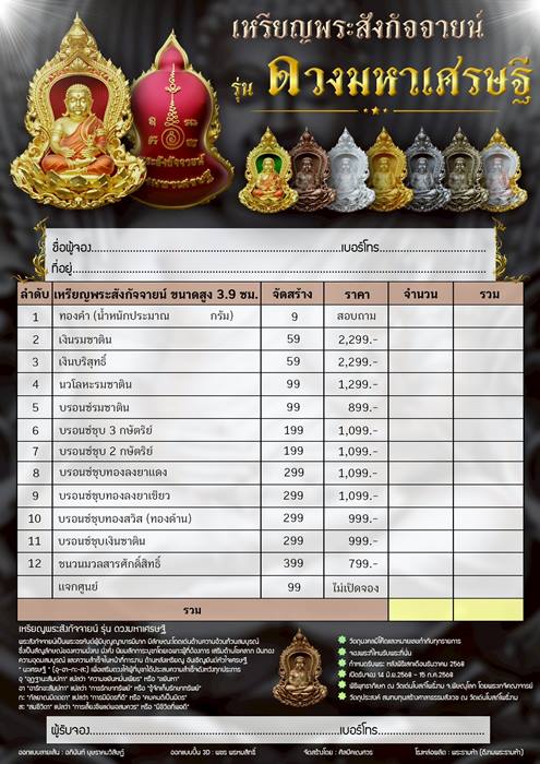 รายการ 6.เนื้อบรอนซ์ชุบ 3 กษัตริย์ ราคาจอง 1,099.-บาท มียอด= 2