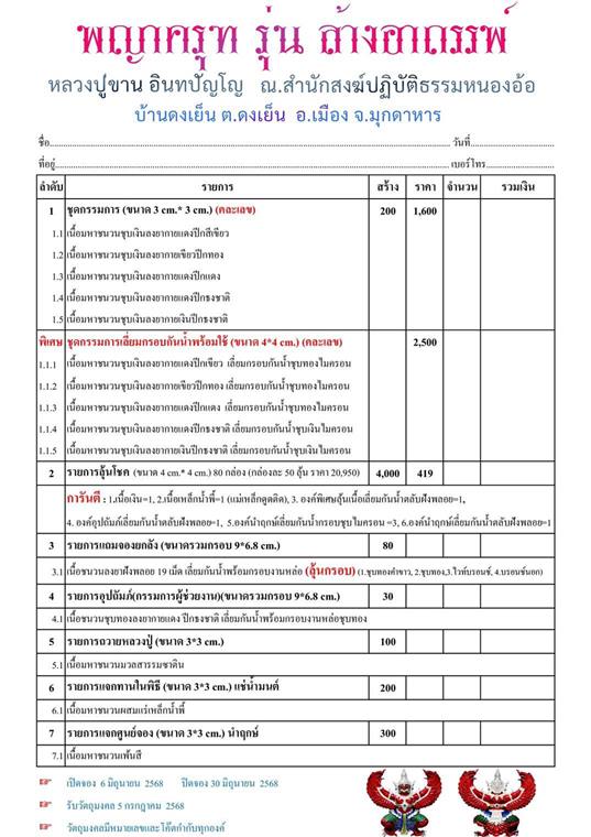 รายการ 1.ชุดกรรมการ ขนาด 3*3 ซม. (รับวัตถุมงคล 5 รายการ) ราคาจอง 1,600.-บาท มียอด= 5