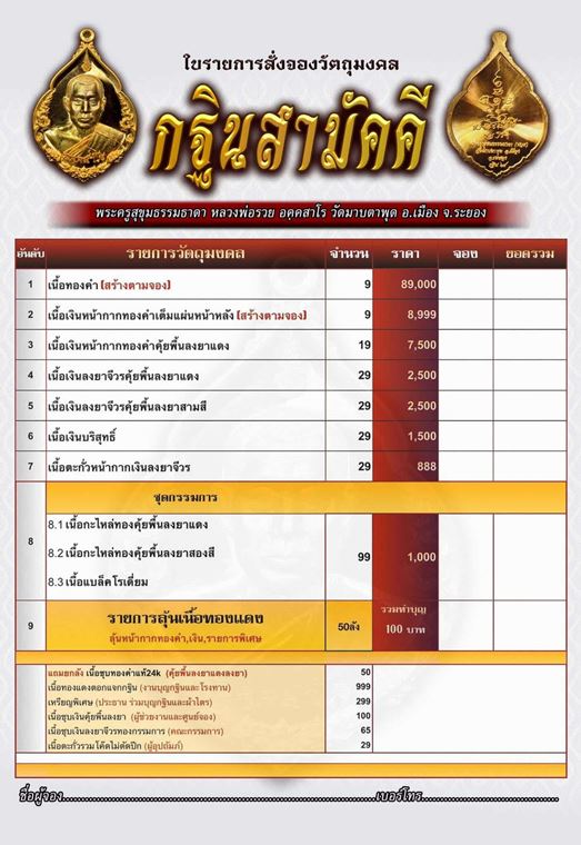 รายการ 7.เนื้อตะกั่วหน้ากากเงิน ลงยาจีวร ราคาจอง 888.-บาท มียอด= 2
