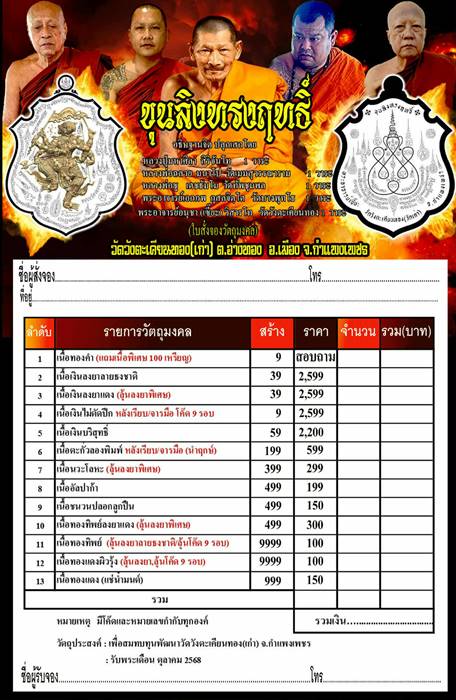 รายการ 6.เนื้อตะกั่วลองพิมพ์ หลังเรียบ/จารมือ (นำฤกษ์) ราคาจอง 599.-บาท มียอด= 5