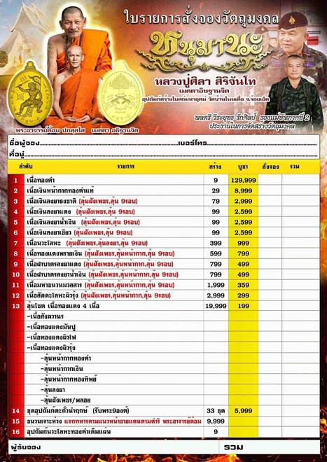 รายการ 14.ชุดอุปถัมภ์ ตะกั่วนำฤกษ์ (รับพระ 9 เหรียญ) ราคาจอง 5,999.-บาท มียอด= 1