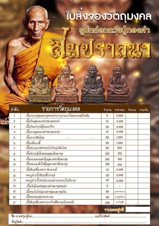 รายการ 11.เนื้อสัมฤทธิ์มวลสาร ช่อ 16 องค์ ราคาจอง 2,499.-บาท มียอด= 1