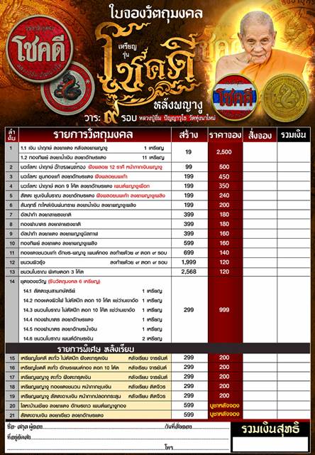 รายการ 13.เนื้อชนวนโบราณ พิเศษตอก 3 โค๊ต ราคาจอง 120.-บาท มียอด= 100
