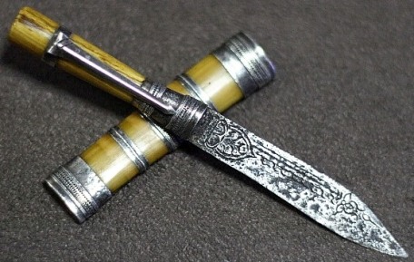 เพิ่มได้มาเล่มล่าสุดครับต้องรบกวนพี่หมออีกครั้ง เล่มนี้ค่อนข้างเก่าและขลังมาก สภาพภายนอกสมบูรณ์ ใบมีสนิมจับผมเลยเช็ดสนิมออกแล้วทาน้ำมัน Pro Gold (ใช้กับ Jack เครื่องเสียงทาเคลือบ) เล่มนี้มีจารที่ปลายด้ามและกั้นมี ปลอกรัด และปลอกท้ายมีด ต้องรบกวนพี่หมอช่วยดูอีกครั้งว่าของแท้หรือไม่ครับ .... รบกวนพี่หมอหรือเพื่อนๆพี่ๆท่านอื่นด้วยครับ ขอบคุณครับ |