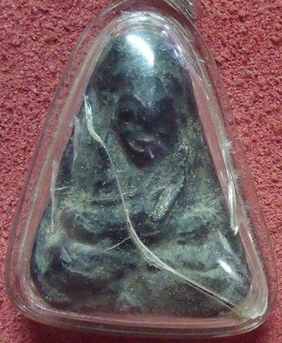 พระองค์นี้อยู่กับผมมาร่วมสิบปี ได้มาจากพี่ชายท่านหนึ่ง อายุประมาณห้าสิบต้นๆ(คนสงขลา)ให้ผมไว้ ตอนได้มาพระไม่ได้เลี่ยม(มีรอยปิ่นตามรูป) พี่เค้าว่าตั้งแต่ออกจากบ้านมาช่วงวัยรุ่น(17-18 ปี) ก็นำพระบนหิ้งที่บ้านมา 3 องค์ กับตะกรุด 1 ดอก คือ 1.พ่อท่านปลอด วัดหัวป่า 2.เป็นพระสายเขาอ้อ 3.พระ(องค์ในรูป) และตะกรุดอดหนึ่งดอก ช่วงที่ผมเจอพี่เค้า ทุกรายการเลี่ยมกรอบแขวนขึ้นคอหมด ยกเว้นพระองค์นี้ (วางไว้บนหิ่งพระ) พี่เค้าเล่าให้ฟังว่า พระองค์นี้แปลกมากๆ ทุกครั้งที่นำไปเลี่ยมกรอบ ไม่ว่าจะเป็น กรอบพลาสติก หรือสแตนเลสก็ตาม หลังจากเลี่ยมกรอบได้ไม่นาน กรอบพระก็จะแตกเองทุกครั้ง(ด้านหน้า) ไม่ว่าจะแขวนขึ้นคอ หรือวางไว้บนหิ้งพระ พี่เค้าว่าเปลี่ยนกรอบมาจนนับไม่ไหว จนท่านตัดสินใจเลิกแขวน เอาไว้บนหิ้งพระอย่างเดียว หลังจากที่ผมได้พระองค์นี้มา ผมก็นำไปเลี่ยม พลาสติก แล้วก็เก็บไว้ที่บ้าน หลังจากนั้นไม่ถึงเดือนไปหยิบพระดูก็ปรากฎว่ากรอบแตก(ด้านหน้า) หลังจากนั้นนำไปเลี่ยมใหม่เป็นกรอบสแตนเลสผลที่ออกมาก็คือแตกเหมือนเดิม(ด้านหน้า) มาครั้งหลังสุดนำไปเลี่ยมอีกครั้ง(พลาสติก) แล้วเก็บไว้ในกล่องสแตนเลส และเก็บไว้ในกระเป่า แขวนไว้ในห้อง หลังจากเลี่ยมมาไม่น่าจะเกินเดือน ไปหยิบกระเป๋าเอาพระมาดู ปรากฎว่า กรอบแตกร้าว(ด้านหน้า) หลังจากนั้นผมก็ไม่ได้นำไปเลี่ยมอีกเลยครับ... แตปัญหาอยู่ที่ว่าพี่เจ้าของพระเก่าเค้าก็ไม่รู้ว่าเป็นของที่ไหน หลวงพ่ออะไร แกว่าเห็นอยู่บนหิ้งมานานก็เลยนำติดตัวมา ส่วนตัวผมเองก็ยอมรับเลยครับว่าไม่รู่จริงๆ และอยากรู้มากๆ พี่ๆท่านใดพอทราบที่ หรือเคยผ่านตามาบ้าง ผมอยากขอความรู้ เป็นวิทยาทานครับ (พระองค์นี้เนื้อคล้ายๆกับพระยอดขุนพล ของท่านอาจารย์ชุม ไชยคีรี) ด้านหลังมีรอยจารเป็นอักขระ อะไรสักอย่าง ท่านใดพอทราบ ผมรบกวนด้วยนะครับ ขอบคุณครับ