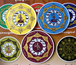เทิดพระเกียรติชุดเบญจรงค์ 7ซมชุดทูลเกล้าสร้างเพียง300ชุดทูลเกล้า 200ชุดหมุนเวียนในท้องตลาดหลักสิบครับ สีเหลืองมหาราช สีฟ้าคู่บารมี สีม่วงมหามงคล สีเหลืองแทนองค์เหนือหัว สีฟ้าชื่อคู่บารมี ส่วนสีม่วงแทนองค์พระเทพครับ เป็นของดีอีกชิ้นหนึ่งครับ มวลสารส่วนหนึ่งพระราชทานมาครับ สวย ความหมายดี พุทธคุณเยี่ยม |