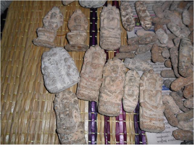 ไม่ได้ให้ดูเป็นองค์ๆให้ดูหมดเลย ภาพถ่ายมาจากหลวงพ่อที่ อ.นาดูน จ.มหาสารคาม ท่านนำมาโชว์ให้ดูเป็นพระที่ท่านบอกว่าขุดพบแต่ถูกเก็บเอาไว้ กลัวมีปัญหากับกรมศิลป์เลยไม่ให้เปิดเผย ผมขอถ่ายรูปไว้แต่ไม่รู้ว่าแท้หรือเปล่า ลักษณะเนื้อเนียนมัน แต่แกร่งมากๆ มีคล้ายๆกรวดหรือแร่ผสมอยู่ด้วย บางองค์ดูสภาพแทบไม่เป็นองค์พระแล้วเหมือนก้อนหินเลย ไว้จะถ่าย