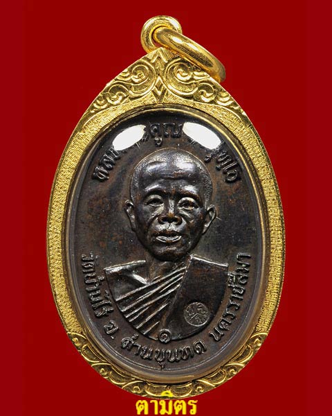 ด้านบนเขียนว่า "หลวงพ่อคูณ ปริสุทโธ" ด้านล่างว่า " วัดบ้านไร่ อ.ด่านขุนทด นครราชสีมา " ......................