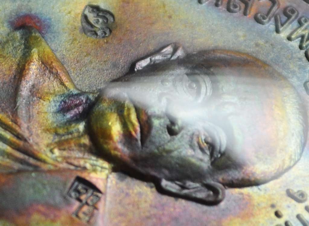 ท่านอาจารย์ช่วย ดูให้ทีครับ วันนี้เอาเหรียญไปเลี่ยม ไปเจอเหรียญนี้เลี่ยมเสร็จพอดี ( ของคนอื่นครับ ไม่ใช่ของผม ) ทำไม สีเหรียญเป็นแบบนี้ครับไม่เคยเห็น
