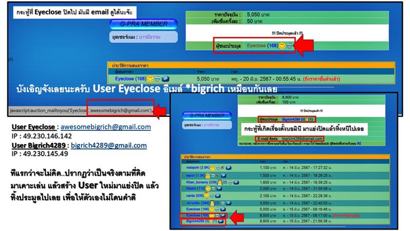 User Bigrich4289 (ผู้ชนะประมูล มาแย่งเคาะปิด) : bigrich4289@gmail.com -> ดันตั้งชื่อ bigrich เหมือนกันอีกเนอะ