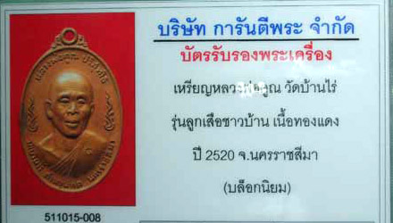 | หัวข้อกระทู้ : บัตรรับรอง เหรียญหลวงพ่อคูณ ลูกเสือชาวบ้าน บล็อกนิยม ปี2520 ??? |