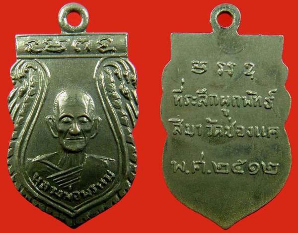 เหรียญเสมาครึ่งองค์ หลวงพ่อพรหม วัดช่องแค นครสวรรค์ สร้าง พ.ศ.2512 เนื้ออัลปาก้า เนื้อเดียว จำนวน 3000 เหรียญ คณะกรรมการวัดจัดสร้างเพื่อแจกให้กับผู้บริจาคเงินสมทบทุนสร้างโบสถ์งานวันยกช่อฟ้าแลละผูกพัทธสีมา