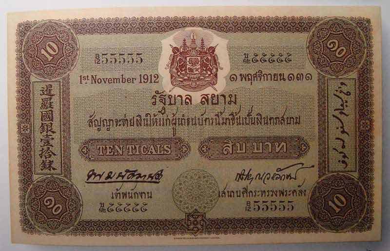 ธนบัตรแบบที่ ๑ ธนบัตรแบบแรกของประเทศไทยที่นำออกใช้ ครั้งแรกรวม ๕ ชนิดราคา โดยมีชนิดราคา ๕ บาท ๑๐ บาท ๒๐ บาท ๑๐๐ บาท ๑๐๐๐ บาท ได้ว่าจ้างบริษัท โทมัส เดอ ลา รู เป็นผู้จัดพิมพ์ โดยคำแนะนำของธนาคารแห่งประเทศอังกฤษ เป็นมูลค่าของธนบัตรที่พิมพ์ขึ้นในครั้งนี้รวมทั้งสิ้น ๘,๐๐๐,๐๐๐ บาท...