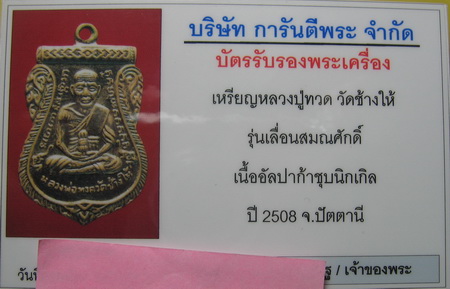 ได้รับโชคดีส่งท้ายปี มีผู้ชนะประมูล MAIL แจ้งว่าพระที่เคยประมูลได้พร้อมบัตรรับรอง รายการเหรียญหลวงปู่ทวด รุ่นเลื่อนสมณศักดิ์ บล็อคชุบ ซึ่งได้ลงประมูลใหม่และมีผู้ชนะประมูลต้องการเปลี่ยนบัตรเป็นชื่อผู้ชนะ ทางการันตีแจ้งว่าพระไม่แท้ (ทั้งที่ก่อนหน้านี้ผมได้ส่งออกบัตรรับรองแล้ว 1 ครั้ง และมีผู้ชนะประมูลขอเปลี่ยนชื่อไปแล้ว 1 ครั้ง รวมเป็นการตรวจสอบถึง 2 ครั้งโดยไม่มีปัญหา) แต่ครั้งนี้ผู้ชนะประมูลส่งพระไปออกบัตรใหม่โดยไม่ได้ส่งบัตรรับรองเดิมไปด้วย งานเข้าทันที ผลการตรวจสอบเป็นพระไม่แท้ ทางผมได้รับการติดต่อจากทางการันตีให้โอนเงินคืนกับผู้ชนะประมูล ซึ่งผมยินดีคืนให้แน่นอน แต่ผมสงสัยในการตรวจสอบ 2 ครั้งแรกว่าทำไม่ผลแจ้งว่าพระแท้ สามารถออกบัตรรับรองได้ ???????? แต่ไม่มีเสียงตอบรับจากหมายเลขที่ท่านเรียก .... ..... .....