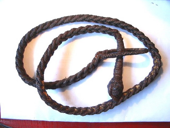 เป็นเชือกคาดของหลวงพ่อสายวัดเสือ ท่าวุ้ง ลพบุรี ทำจากเชือกป่านถักทายางไม้ยางรักเก่ามาก ท่านทำน้อยมาครับ เป็นเกจิ อาจารย์ที่ผมนับถืบเลื่อมใสตลอดมา เหรีญรุ่น 1 ของท่านออก ปี2462 อีก 20 ปีต่อมาท่านจึงยอมออกเหรียญรุ่น 2 ที่ผมเคยลงให้ชมไปแล้ว เชือกเส้นนี้เดิมเป็นของเซียนพระแถวพะยุหคีรีและมาอยู่ที่พี่เขยผมและท่านได้มอบให้ผมอีกที ด้วยว่าผมมาแต่งงานกับแฟนคน ท่าวุ้ง
