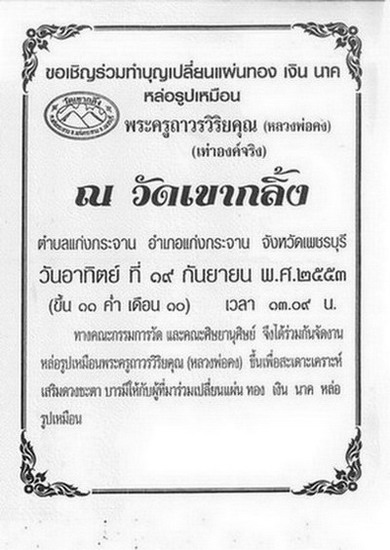ณ วัดเขากลิ้ง ต.แก่งกระจาน อ.แก่งกระจาน จ.เพชรบุรี