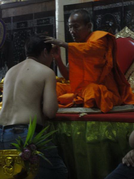 การลงทองมหาเสน่ห์ใหญ่ท่านจะลงด้วยบทที่เป็นสุดยอดวิชาลงด้วยไม้ครู ที่สืบทอดกันมาจากวัดระฆัง ปลายไม้นี้ฝังด้วยทองคำ เวลาท่านลงอนุภาคของทองคำจะถูกถ่ายเข้าสู่ร่างกายของเรา เวลาลงจะเริ่มลงที่หัว ตา หน้าอก หลัง มือ แล้วจบด้วย ลิ้นทอง
