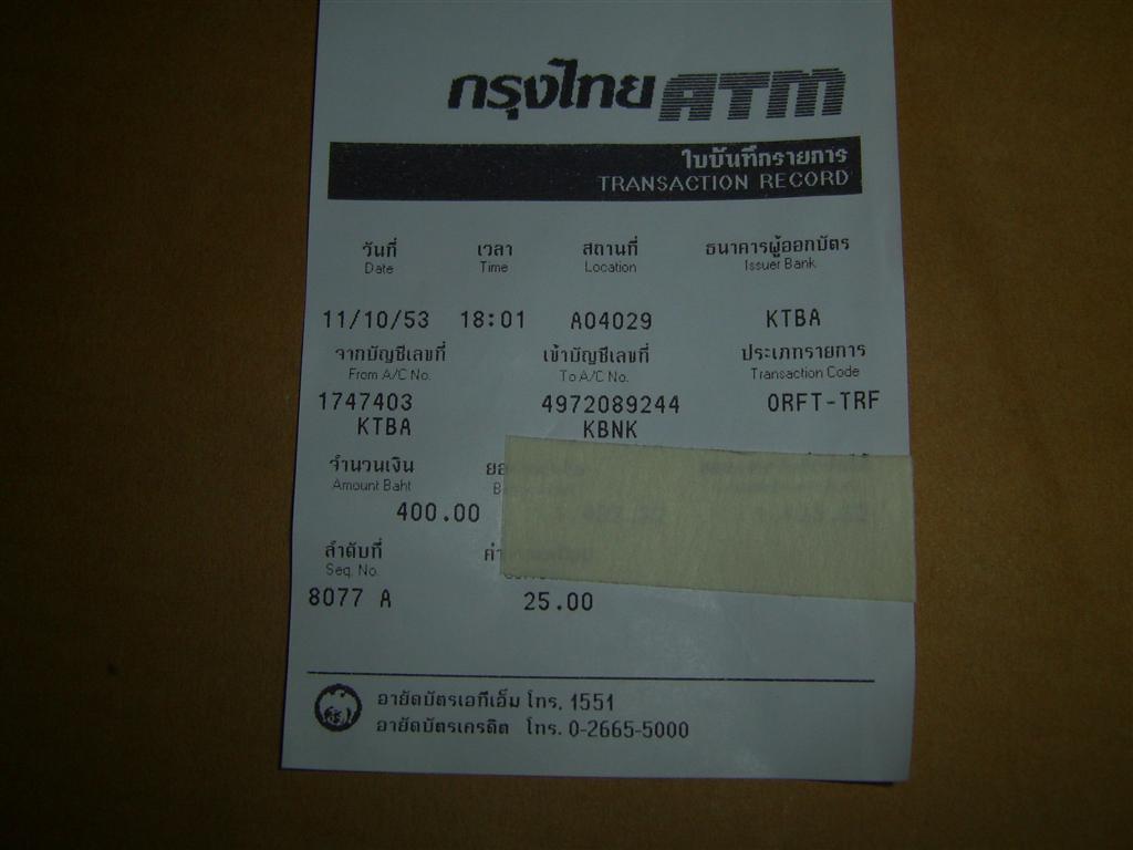 โอนเงินให้แล้วครับ 400.- บาท