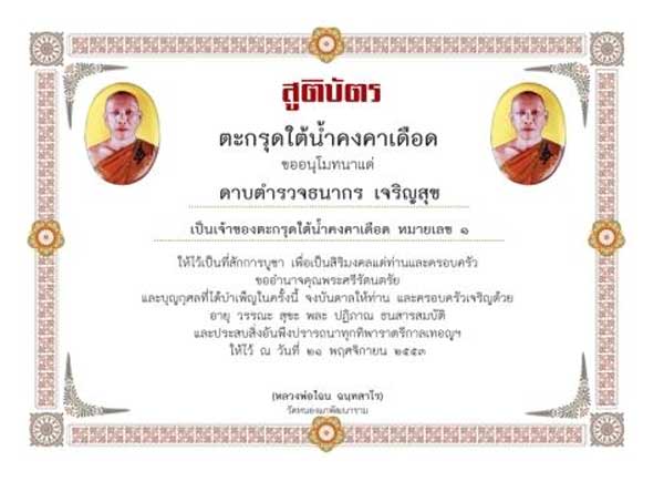 | หัวข้อกระทู้ : ## ใบสูติบัติตะกรุดใต้น้ำครั้งประวัติศาสตร์หลวงพ่อไฉน วัดหนองแก สำหรับผู้ที่จองตะกรุดใต้น้ำไว้คับ ## |