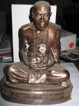 ผมมีพระบูชาหลวงปู่คำบุ อยู่องค์หนึ่ง ตั้งไว้บนหิ้งพระรวมกับวัตถุมงคลอื่นๆ หลังจากที่ตั้งอยู่บนหิ้งนี้ 4-5 เดือน ก็ปรากฏว่าที่องค์พระก็มีสภาพอย่างที่เห็นตามรูป อย่างนี้เรียกว่า"พระงอก" ใช่หรือไม่ รบกวนผู้รู้ทั้งหลาย ช่วยให้ความกระจ่างด้วยครับ ขอบพระคุณล่วงหน้านะครับ |