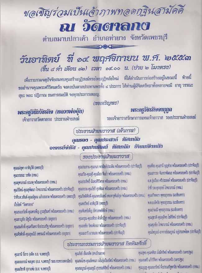 ผมจะนำเงินทำบุญทั้งหมดนี้ไปถวายเข้ากองกฐินของวัดตาลกง รายได้จากงานกฐินทั้งหมดในครั้งนี้จะแจ้งให้สมาชิกทราบอีกครั้งนะครับ